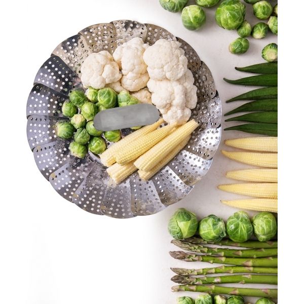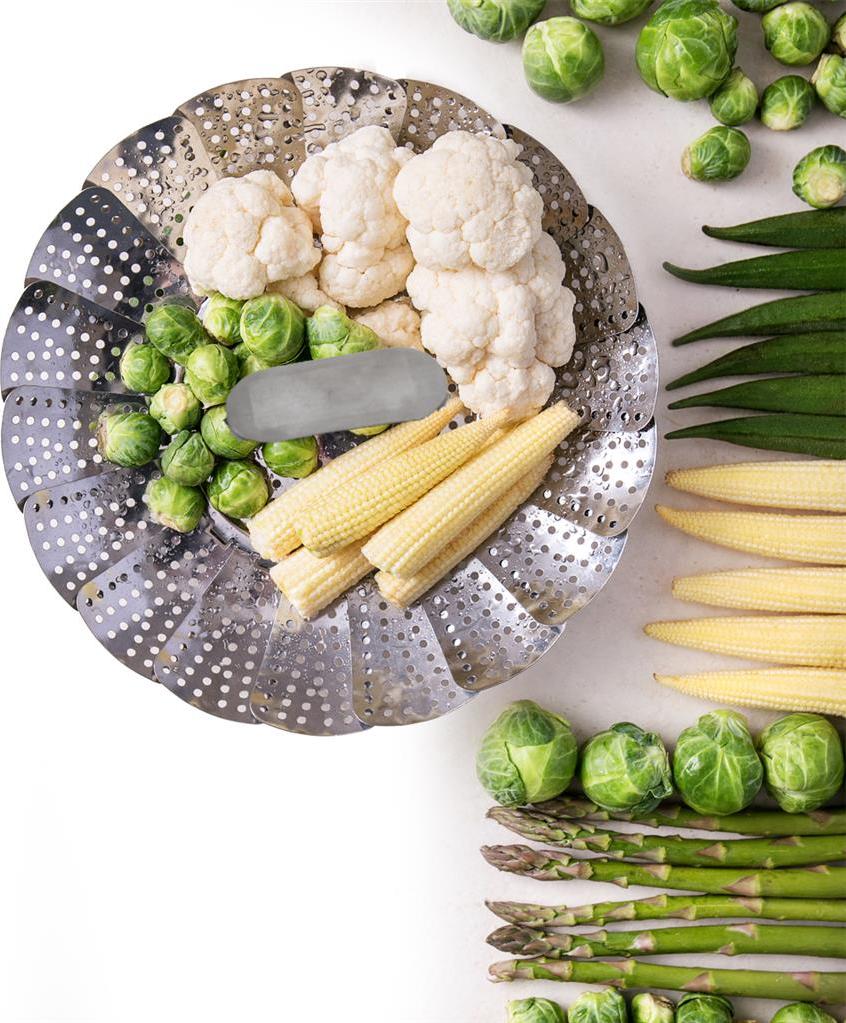 Pařáček nerezový skládací je vhodný k napařování knedlíků i vaření zeleniny a jiných pokrmů v páře