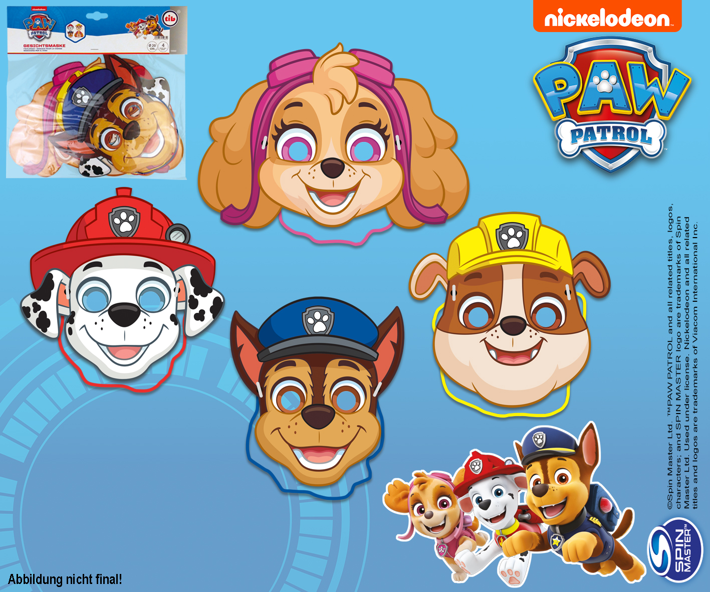 Papírové masky jsou vyrobeny z papíru. Zářivé a jasné barvy jsou stálé. Masky s motivy členů Tlapkové patroly se vzadu uchycují gumičkou, dobře drží a nepadají z obličeje.