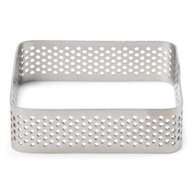Tento prstenec z nerezové oceli hranatého tvaru je ideální pro přípravu sladkých nebo slaných koláčů a dortů. Tato bezedná forma se používá na talíři či na plechu. Vydání a prezentace budou dokonalé. Údržba je snadná, protože je vhodný do myčky. Okraje jsou srolované. Používají ho profesionálové. Výška - 2 cm