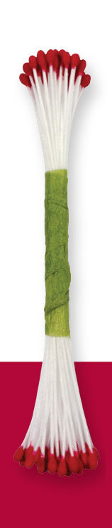 Tyto matné dekorační pestíky jsou určeny pro tvorbu jedlých květů. Mají červené konce, průměr je 0,2 mm. V balení je 50 ks pestíků.