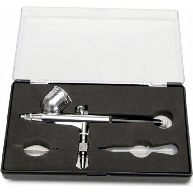 Tato airbrush pistole od Stadter má 2-pákovou funkci pro regulaci tlaku vzduchu a množství barviva.