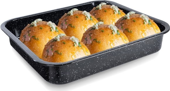 Plech smaltovaný hluboký. Využijete ho k pečení masa i moučníků. Rozměry: vnitřní 38x34x7 cm, vnější 42x37,5x7 cm.