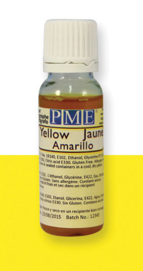 Žlutou airbrush barvu bez lesku využijete pro povrchové zdobení dortů i na drobné vánoční cukroví. Barva je vodou ředitelná. Hmotnost je 25g.