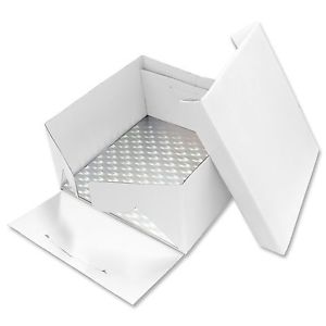 Kompletní sada na snadnou přepravu dortu. Zářivá stříbrná podložka se hodí i na servírování. Krabice jsou vyrobeny z bílého kartonu a dodávají se v rozloženém stavu. Podložka je potažena stříbrnou folií. Rozměry jsou 20,3cm x 20,3 / 15,2 cm.