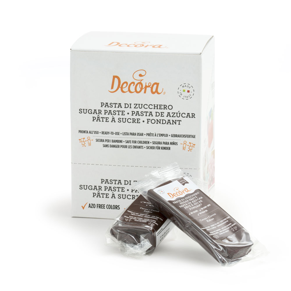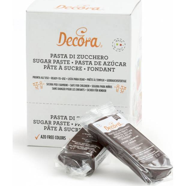 Kakaová modelovací cukrová pasta balená ve vakuových sáčcích. Cukrová pasta má perfektní tvárnost a pružnost danou kakaovým máslem, je ideální pro pokrývání dortů, pro vytváření květin a 3D předmětů, můžete ji natřít ručně nebo pomocí těsta do tloušťky 1 mm, příjemné na chuť díky lehké mandlové vůni. Barevná cukrová pasta nabízí několik dekorativních možností se značnou úsporou z ní činí ideální pastu také pro vytváření předmětů a dekorací, jako jsou květiny a listy, a zajišťuje, že předměty a dekorace zůstanou dokonalé bez rizika zhroucení a zlomení.
