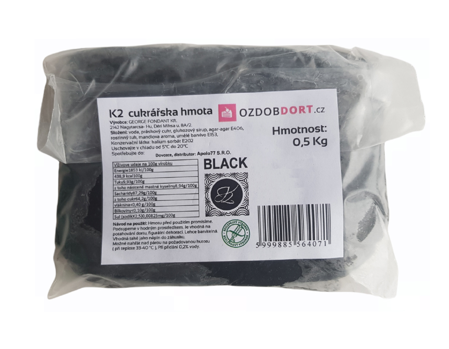 Potahovací hmota K2 na dorty 0,5kg černá - K2