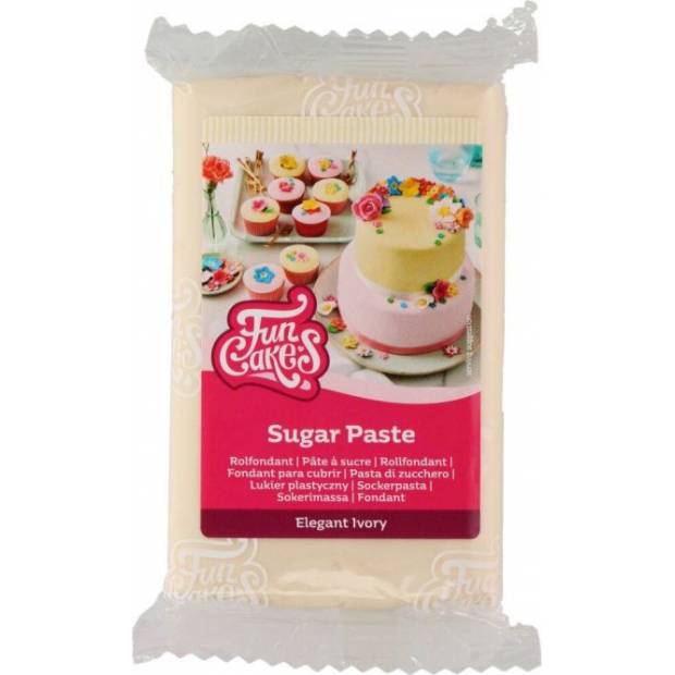 Cukrová pasta má krásnou barvu a lahodnou vanilkovou příchuť. Ideální na zakrytí dortu a vykrajování tvarů. Před použitím dobře prohněteme a vyválíme na tenkou vrstvu moučkového cukru. Cukrovou pastu můžete také použít k modelování nebo vytvářet různé tvary a vzory. Vhodné také k barvení potravinářským barvivem. Pro dosažení nejlepších výsledků nechte fondán po obarvení jednu hodinu odpočívat (přikrytý). Před dalším zpracováním cukrovou pastu znovu prohněteme. Na pokrytí kulatého dortu o průměru 20 cm budete potřebovat přibližně 500 g fondánu. Cukrová pasta FunCakes s lahodnou vanilkovou příchutí, velmi pružná, hladká a snadno se používá díky své jemné struktuře. Fondán je měkký, poddajný a po zpracování zcela vytvrdne. Cukrová pasta FunCakes je díky svému saténovému provedení perfektní pro potažení dortu. Chcete-li z fondánu vykrajovat tvary, pak máte jistotu, že získáte úhledné, čisté a ostré výřezy. Cukrová pasta je vhodná i pro tvorbu dekorací, snadno modelujete nebo vytváříte různé tvary a vzory. Obsah: 250 gramů. Skladování: skladujte v suchu a temnu, 15°C – 20°C. Příprava: Pro nejlepší výsledek se doporučuje následující postup: Nechte cukrovou pastu ohřát na pokojovou teplotu. Cukrovou pastu důkladně hněteme, dokud nebude hladká a pružná. Pracovní plochu poprašte trochou moučkového cukru a válečkem vyválejte fondán do rovnoměrného tvaru (tloušťka 2-3 mm). Otočte cukrovou pastu o čtvrtinu, aby se nepřilepila. Jsou při vyvalování fondánu na okrajích stále vidět drobné prasklinky? Znovu důkladně hněteme, dokud nejsou okraje při vyvalování hladké. Poté je cukrová pasta připravena k použití.