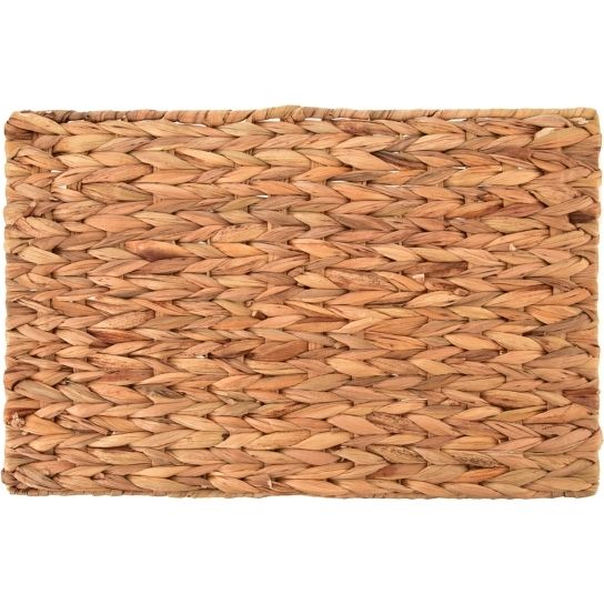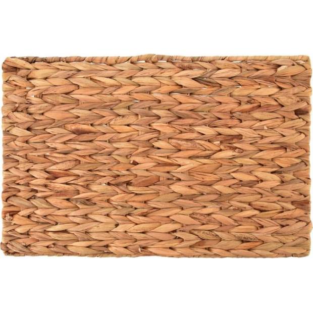 Prostírání z přírodního materiálu. Po obvodu kovový rám – skrytý. Materiál: listy mořské trávy, kov. Rozměry: 45x30 cm.