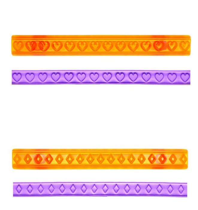 Reliéfní vytlačovač na listy umožní snadné vytvoření pravidelných srdcí a kosočtverců. Vytlačovat stačí otisknout do hmoty.