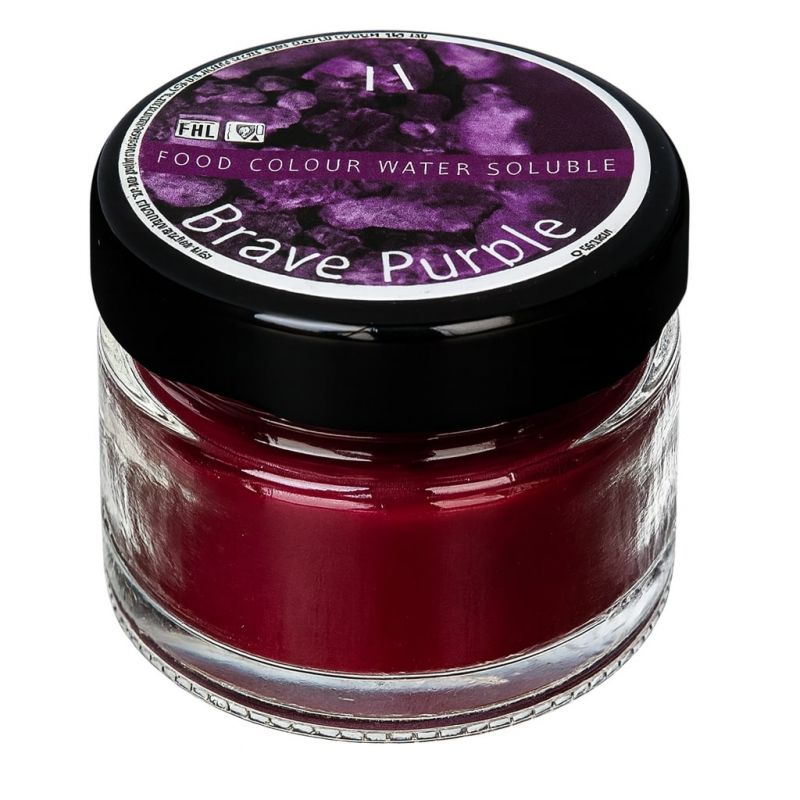 Vodou rozpustné barvivo BRAVE PURPLE dodá dezertům intenzivní, hluboký fialový odstín plný energie, síly a elegance – pro výrazný, moderní a sofistikovaný vzhled vašich cukrářských výtvorů.