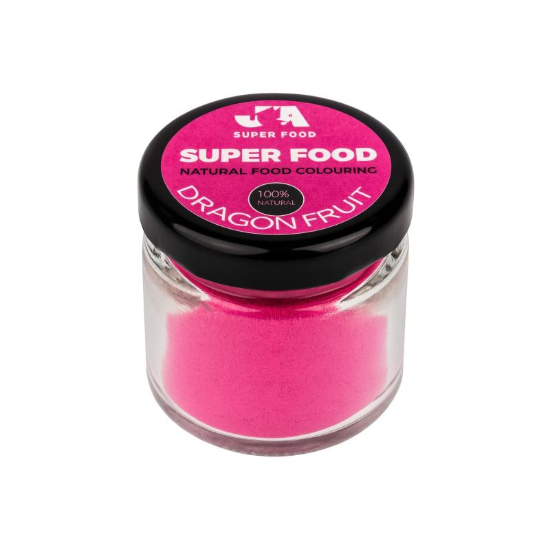 Pokud miluješ barvy, které na první pohled přitáhnou pozornost, pak je DRAGON FRUIT ideální volbou. Toto 100% přírodní barvivo se vyrábí z usušené pitahayi (dragon fruit) a dodá tvým dezertům krásně živý růžovo-fialový tón – moderní, čistý a dokonale výrazný. Patří mezi barviva, která dávají přirozeně zářivé výsledky bez chemických příměsí a bez vlivu na chuť či strukturu.