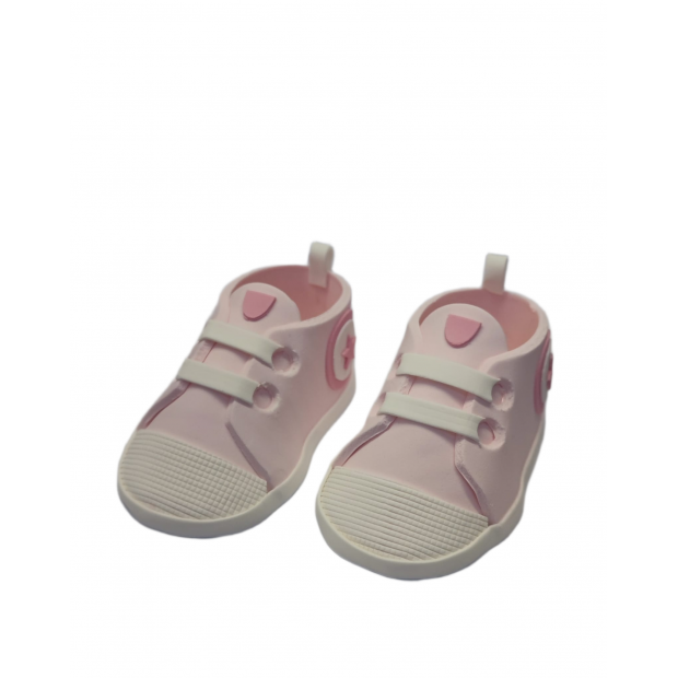 Růžové tenisky – malé miminkovské botičky – jsou dekorace, která okamžitě přinese na dort jemnost, radost a symboliku nového začátku. Každý pár je kompletně ručně vymodelovaný, takže každý šev, tkanička i tvar působí jako mini replika opravdových dětských botiček. Jemná růžová barva dodává celé scéně sladký, roztomilý nádech, který se dokonale hodí k dortům pro holčičky.