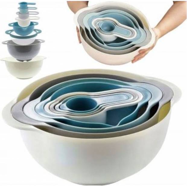 Objevte barevnou a praktickou sadu 10 dílů, která zahrnuje misky, odměrky a cedníky. Když všechny díl