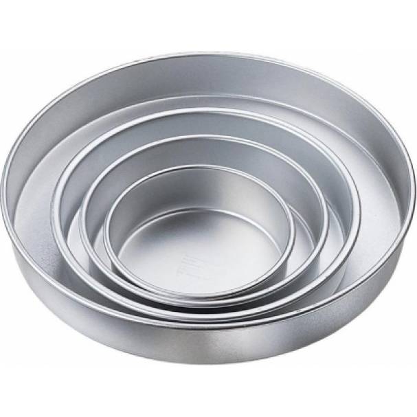 Sada kulatých hliníkových forem na přípravu čtyřpatrového dortu. Hliníkové formy jsou zdravotně nezávadné, mají výbornou tepelnou vodivost a svůj tvar si drží po mnoho let. Sada forem na dort z hliníku je vhodné pro profesionály i běžné domácnosti. Formy na pečení mají různé rozměry, hotové korpusy pak stačí sestavit od největšího po nejmenší, spojit krémem či marmeládou a dle potřeby nazdobit. Formy lze mýt v myčce nádobí.
