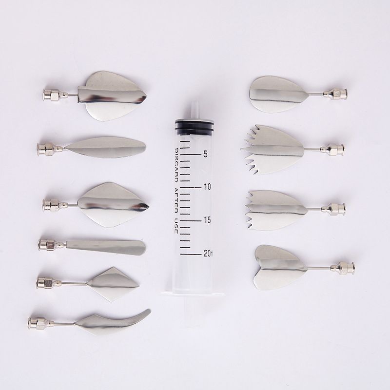 Tato forma představuje pomůcku na 3D Jelly flower art. Obsahuje komponenty pro tvorbu úspěšných 3D výtvorů želé květin a k vytváření zapouzdřených květin a výplňových rostlin v průhledném základním želé. Sada obsahuje listy různých druhů rostlin a také stříkačku pro aplikaci želé. Vysoce kvalitní nástroje pro 3D želatinové želatinové želatinové umělecké potřeby z nerezové oceli, navržené tak, aby pomohly lidem, kteří by chtěli vyrobit krásné želé. Vhodné pro profesionální nebo domácí použití, užijte si svou rodinu, přátele, design jedinečný, který může ozdobit váš zvláštní den. Speciální design je velmi bezpečný pro řemeslné projekty. Sada obsahuje 10 x želé jehly, 1 x stříkačka.