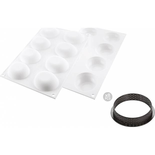 Sada Tarte Ring Mini Palet Moule 3D Yann Couvreur Silikomart Professional je ideální pro výrobu elegantních a rafinovaných dezertů. Sada Tarte Ring Mini Palet Moule 3D Yann Couvreur byla vytvořena ve spolupráci s Yann Couvreur Pastry Chef a tvůrcem shiso limetkového koláče, skutečného receptu. Jakmile jsou vaše tartaletky vylisované, potřete je sametovým sprejem nebo zrcadlovou glazurou, abyste získali povrch hodný toho nejlepšího cukráře. Sada se skládá z: - 8 kroužků o průměru 70 mm z termoplastického kompozitního materiálu proti drcení vhodného pro vaření a vytvoření základny - silikonová forma o průměru 64 mm na výrobu pěn nebo krémů na nanášení křehkých krust. Kroužky jsou nepřilnavé a nerezové, umožňují rovnoměrné vaření a vyznačují se vysokou tepelnou stabilitou. Tyto profesionální formy lze použít v troubě, mikrovlnné troubě nebo mrazáku. Můžete si tak připravit jakoukoliv přípravu na gurmánský a designový koláč. Formy Silikomart jsou vyrobeny ze 100% tekutého platinového silikonu, nejlepšího silikonu na trhu, protože neobsahuje toxické prvky. A kromě toho, že jsou zdravé, mušle nevydávají pachy a mají nízký obsah těkavých látek. Silikomart silikonové formy jsou velmi praktické, protože odolávají teplotám v rozmezí -60° až +230°. Lze je tedy použít v troubě, v mikrovlnné troubě nebo v mrazáku. Silikonový materiál 3D forem umožňuje jejich ohýbání bez poškození, což je velmi užitečné při vyjímání dortů a zákusků, ale také při skladování. Navíc jsou vhodné do myčky nádobí. - Rozměry kruhu: ? 70 x v 20 mm - Rozměry formy: ? 68 x v 18 mm - Objem: 8 x 47ml = 376ml