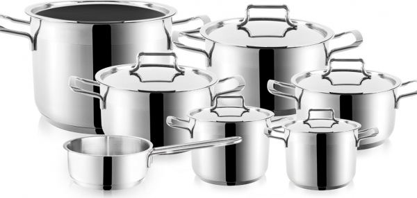 Sada nádobí s poklicí s otvory pro únik páry - kastrol 2,3 l, pr. 18 cm, v. 10 cm, kastrol 4,3 l, pr. 22 cm, v. 12 cm, kastrol 3 l, pr. 20 cm, v. 10 cm, kastrol 3,5 l, pr. 18 cm, v. 14 cm, kastrol 1,5 l, pr. 14 cm, v. 10 cm kastrol, kastrol bez poklice 6,5 l, pr. 22 cm, v. 17,5 cm a rendlík bez poklice 0,9 l, pr. 14 cm, v. 6 cm. Nerezové kastroly a hrnce představují díky používaným technologiím a kvalitním materiálům výrobek vhodný pro každou moderní domácnost a jsou ideální cestou ke zdravé výživě, dietní, ekonomické a estetické přípravě pokrmů. Nabízené nádoby jsou vyrobeny z vysoce kvalitní nerezové oceli třídy 304. Naakumulovaná energie předává teplo dále do nádoby – tepelný zdroj vypínáme v předstihu. Nádobí lze používat na všechny typy spotřebičů i do trouby. Vhodné i do myčky nádobí. – fritování, napařování, vaření s minimálním množstvím tuku, bez ztráty vitamínů a minerálů obsažených v potravinách - nádobí představuje dokonale hygienické prostředí pro vaření a uchování potravin- zachování přirozené chuti a hmotnosti upravovaných potravin- vnější a vnitřní povrch nádob je vysoce leštěný, takže brání usazování nečistot a zaručuje dokonalou údržbu.