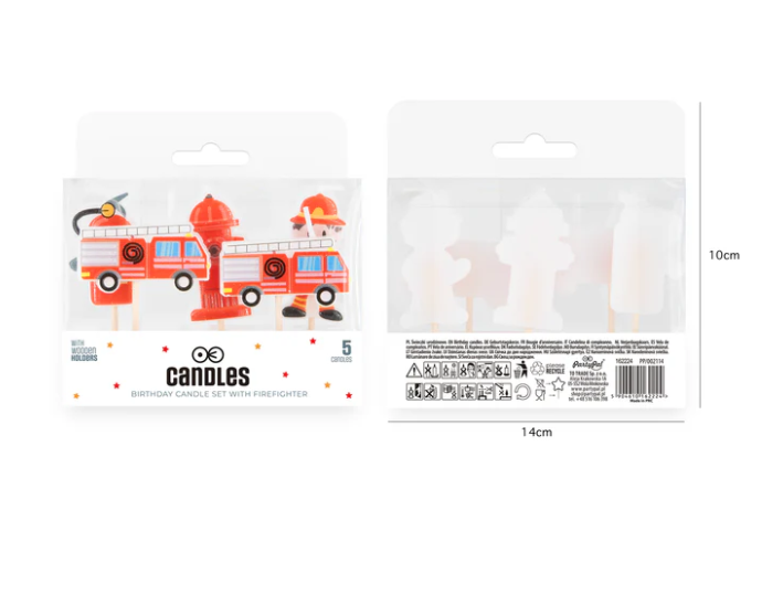 Design je detailní a barevný, ideální pro tematické dětské oslavy, narozeniny nebo párty s motivem hasičů. Svíčky lze snadno zapíchnout do dortu nebo cupcakes.