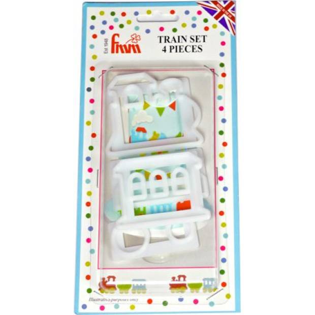 Sada 4 ks praktických vykrajovátek s motivem vláčku.