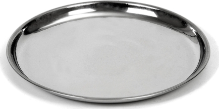Tác servírovací kulatý. Materiál: nerez. Rozměry: pr. 23 cm.