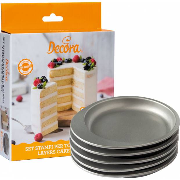 Sada skládající se z 5 forem z nepřilnavého materiálu, ideální pro výrobu stupňovitých dortů, vícebarevných  nebo s různými vůněmi. Ideální pro přípravu sladkých  i slaných přípravků. Stačí uvařit těsto v 5 formách,  naplnit je a překrýt, aby vznikly úžasně vypadající  a vkusné dorty. Formy jsou snadno použitelné a jsou  vybaveny malou rukojetí, která usnadňuje manipulaci.