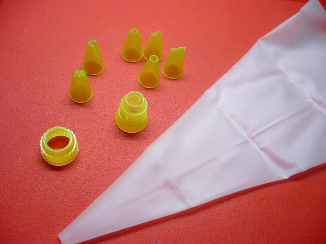 Sáček a šest trysek s různým tvarem na jednoduché zdobení dortů a dalších pekařských výrobků
