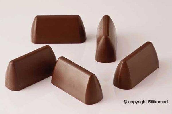 Silikonová forma na čokoládu od Silikomart. Tvar střecha 24 x 14 g. Objem 336 ml.