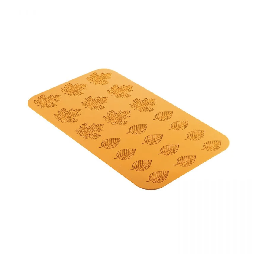 Tato forma se vyznačuje vysoce kvalitní, flexibilní konstrukcí vyrobenou ze 100% platinového tekutého silikonu. Je navržena s 21 jednotlivými dutinami ve tvaru podzimních listů, 12 malými a 9 středními, a nepřilnavý materiál vám umožní vyjmout pečené zboží snadno a bez potřeby mastnoty. Položte ji na plech plné velikosti, abyste ji mohli snadno umístit a vyjmout z trouby, nebo jij vložte do lednice, abyste zchladili položky menu před zdobením. Snadno se také čistí, takže je dokonalým doplňkem každé komerční kuchyně.