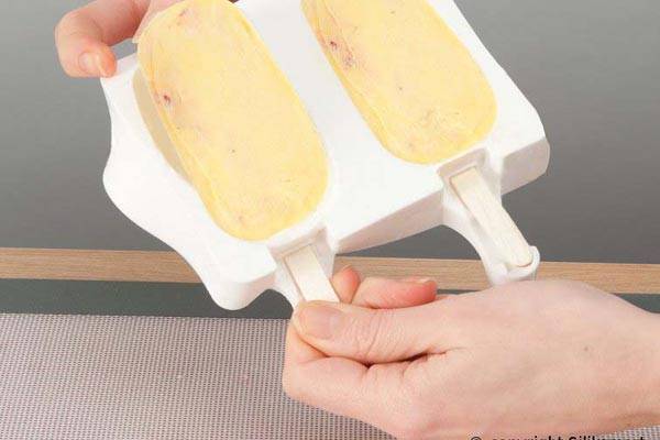 Tato forma není určena na vodové nanuky, směs musí být dostatečně hustá, aby nedocházelo k vytékání obsahu skrz otvor pro dřívko k nanuku.