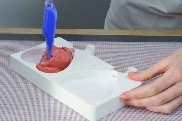 Tato forma není určena na vodové nanuky, směs musí být dostatečně hustá, aby nedocházelo k vytékání obsahu skrz otvor pro dřívko k nanuku.