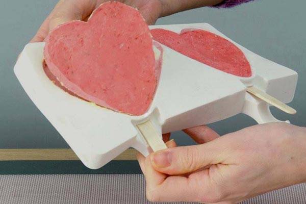 Každá ze dvou formiček je vyrobena z kvalitního pružného a odolného silikonu. Obě formičky mají praktické otvory na dřívka do zmrzlin. V balení jich najdete padesát. Kromě dřívek je v sadě i kniha receptů pro inspiraci. Najdete v ní hned šest nápadů na přípravu zmrzliny bez stroje na zmrzlinu. Rozměry jednoho nanuku ve tvaru srdce jsou 91 x 85 x 23 mm. Formy můžete mýt v myčce.