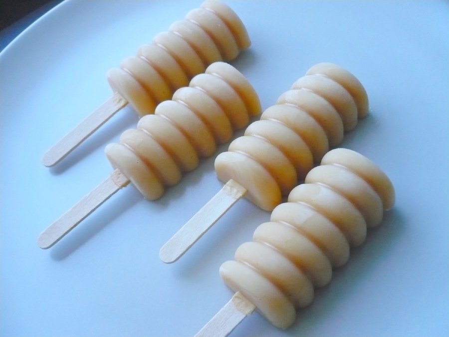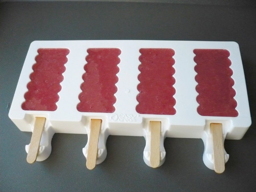 Tato forma není určena na vodové nanuky, směs musí být dostatečně hustá, aby nedocházelo k vytékání obsahu skrz otvor pro dřívko k nanuku.