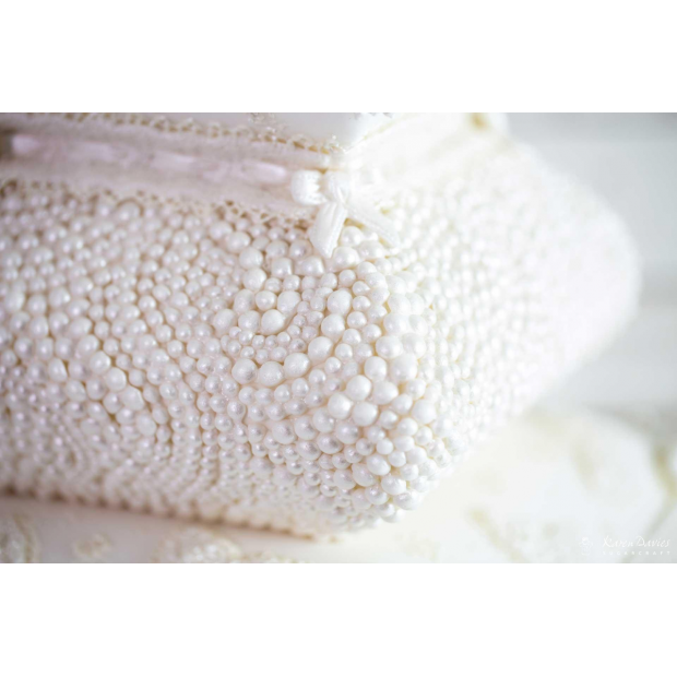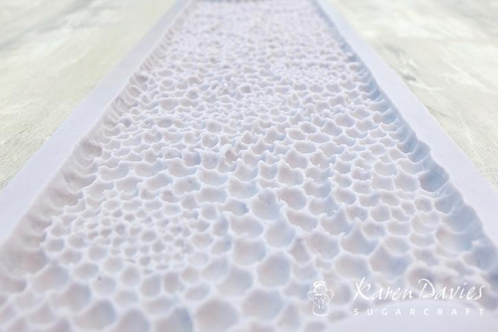 Tato forma na vytváření perlového vzoru od Karen Daviesové je ideální pro zdobení především svatebních dortů. Forma se snadno používá a měla by být součástí každé sady nástrojů na zdobení dortů. Forma Karen Davies je flexibilní a je vyrobena z vysoce kvalitního silikonu. Před použitím formu umyjte a důkladně osušte.