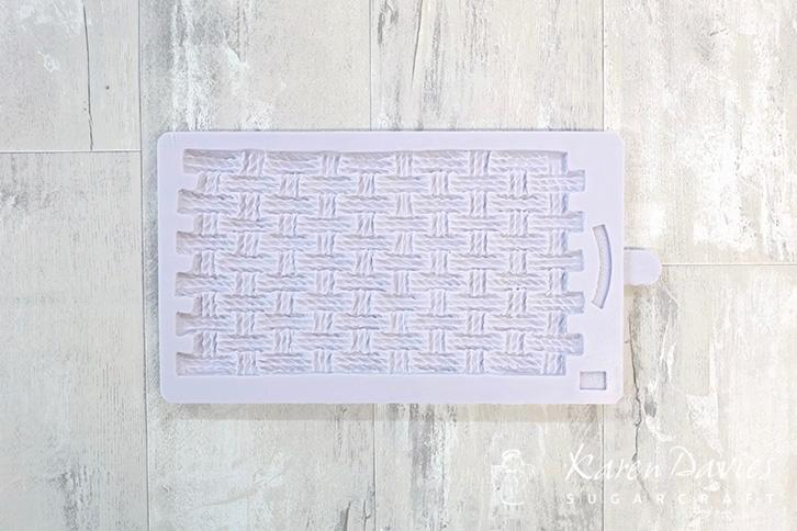 Silikonová forma pro vytvoření povrchu proutí na dortech.