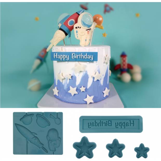 S pomocí této silikonové formičky získáte požadovaný tvar rakety, hvězd a planety, která poslouží jako dokonalá jedlá dekorace. Forma je vyrobena ze zdravotně nezávadného silikonu, který je určen pro kontakt s potravinami. Lze mýt v myčce nádobí.