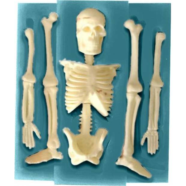 Praktická silikonová formička na hmoty jako fondán, marcipán či čokoládu je perfektní pomůcka, která vám umožní vytvořit úžasné ozdoby dortu v podobě kostlivce. Tato vysoce kvalitní silikonová forma je ideální pro vytváření dekorací s konkrétní tématikou. Díky této formě snadno vytvarujete různé druhy cukrové pasty, jako je marcipán nebo plastová poleva, a vytvoříte tak fantastické detaily. Forma je extrémně flexibilní a nepřilnavá, díky čemuž lze vylisované prvky snadno oddělit od formy bez poškození. Tato silikonová forma je odolná a snadno se čistí. Dá se používat znovu a znovu, takže je nezbytnou pomůckou každého domácího cukráře.