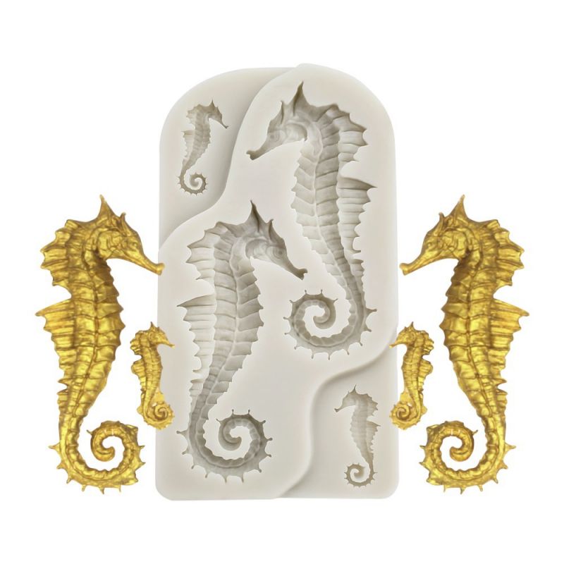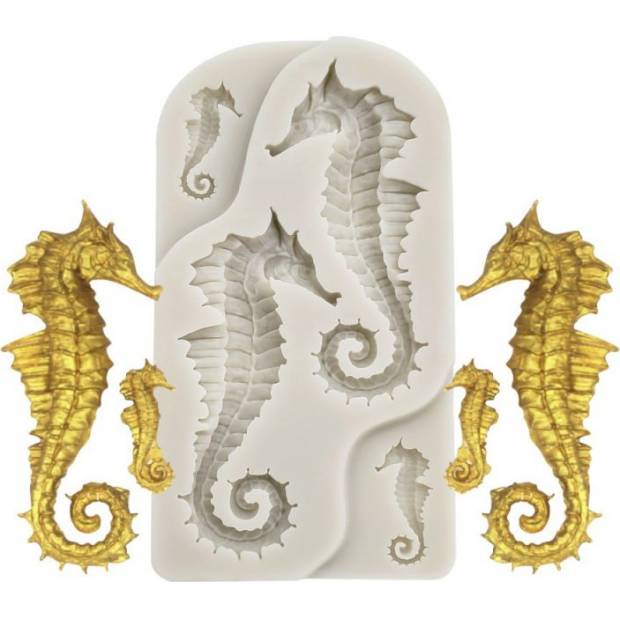 Praktická silikonová formička na hmoty jako fondán, marcipán či čokoládu je perfektní pomůcka, která vám umožní vytvořit úžasné ozdoby dortu ve tvaru mořského koníka. Tato vysoce kvalitní silikonová forma je ideální pro vytváření dekorací s konkrétní tématikou. Díky této formě snadno vytvarujete různé druhy cukrové pasty, jako je marcipán nebo plastová poleva, a vytvoříte tak fantastické detaily. Forma je extrémně flexibilní a nepřilnavá, díky čemuž lze vylisované prvky snadno oddělit od formy bez poškození. Tato silikonová forma je odolná a snadno se čistí. Dá se používat znovu a znovu, takže je nezbytnou pomůckou každého domácího cukráře.