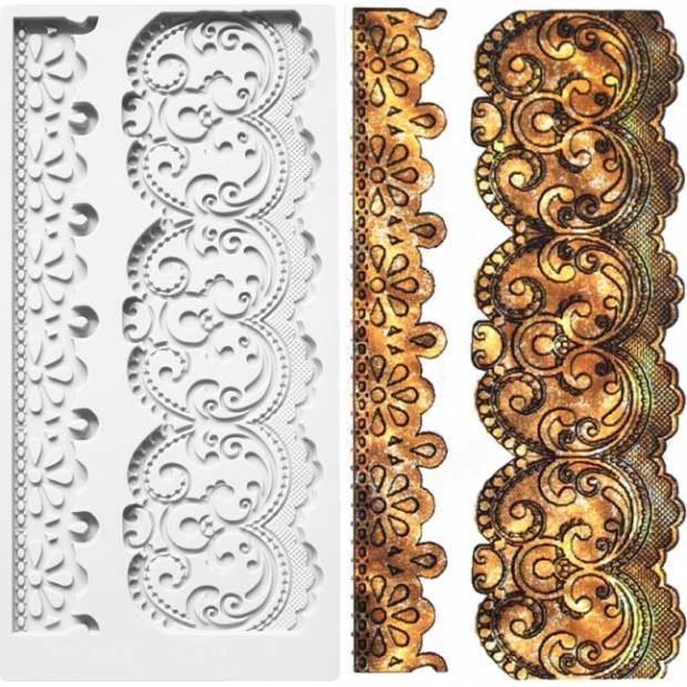 Praktická silikonová formička na hmoty jako fondán, marcipán či čokoládu je perfektní pomůcka, která vám umožní vytvořit úžasné ornamenty na okraje dortu. Tato vysoce kvalitní silikonová forma je ideální pro vytváření dekorací s konkrétním motivem. Díky této formě snadno vytvarujete různé druhy cukrové pasty, jako je marcipán nebo plastová poleva, a vytvoříte tak fantastické detaily. Forma je extrémně flexibilní a nepřilnavá, díky čemuž lze vylisované prvky snadno oddělit od formy bez poškození. Tato silikonová forma je odolná a snadno se čistí. Dá se používat znovu a znovu, takže je nezbytnou pomůckou každého domácího cukráře.