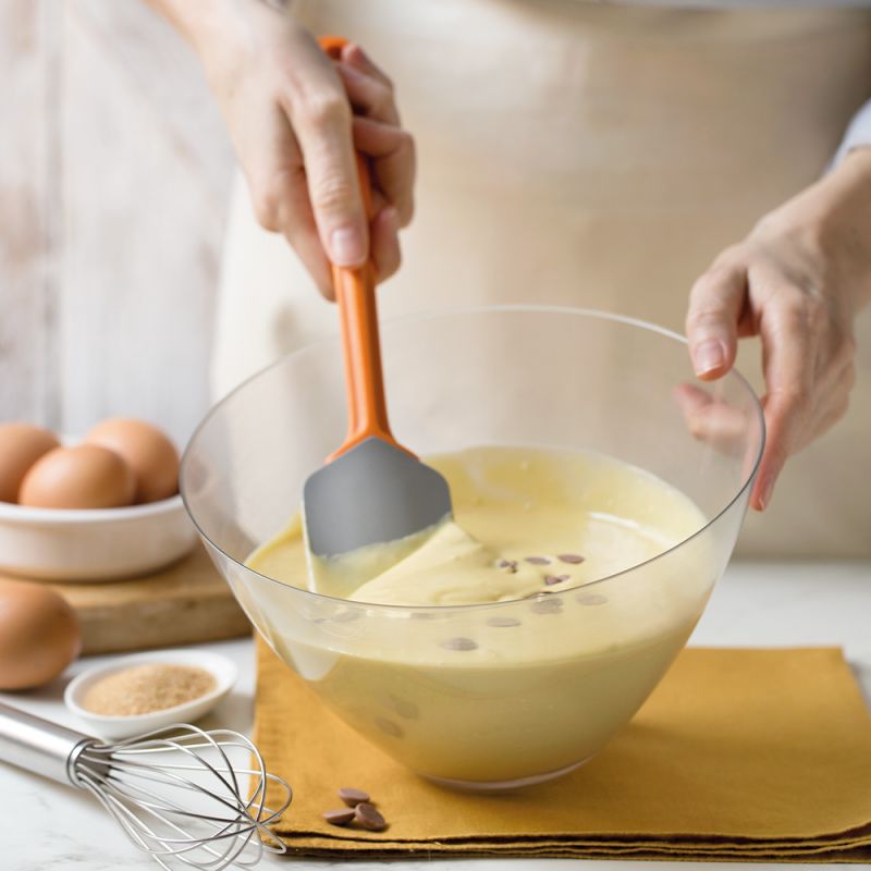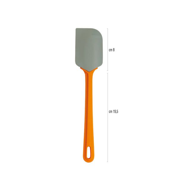 Kuchyňské náčiní ze 100% platinového silikonu s ergonomickou plastovou rukojetí. Nepostradatelné pro míchání jakéhokoli typu těsta, je vhodné na sladké i slané. Se zaobleným pružným okrajem pro snadné zachycení zbytků těsta i v menších nádobách. Rukojeť: 19,5 cm Lopatka: 8 cm