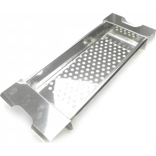 Nerezové síto na halušky či knedlíčky. Síto můžete položit rovnou na hrnec (délka síta je 40 cm) díky držákům a strouhat halušky přímo do vroucí vody.
