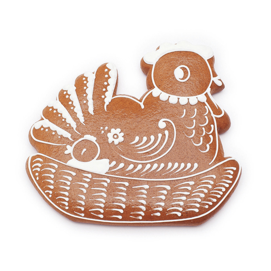 Vykrajovací formička na perníkové těsto ve tvaru slepice na ošatce. Vyrobena je z kvalitního pocínovaného plechu. Poté, co formičku použijete, ji omyjte ve vodě a osušte. Nepoužívejte na mytí formičky myčku nádobí. V balení najdete také recept na perníčky.