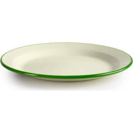 Vašemu slavnostně prostřenému stolu dodá šmrnc hezký talíř v bílém provedení s tenkým zeleným okrajem. Talíř je vyroben z kvalitního smaltu, který je velmi odolný a lze jej snadno umýt. Smaltovaný talíř vám dobře poslouží i desítky let.