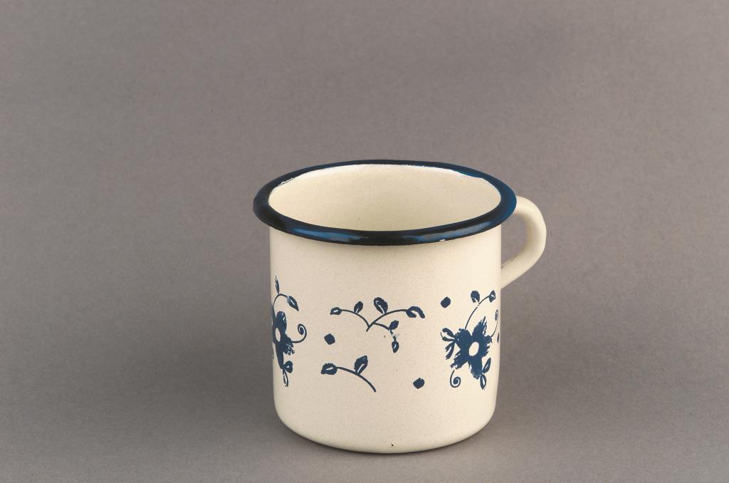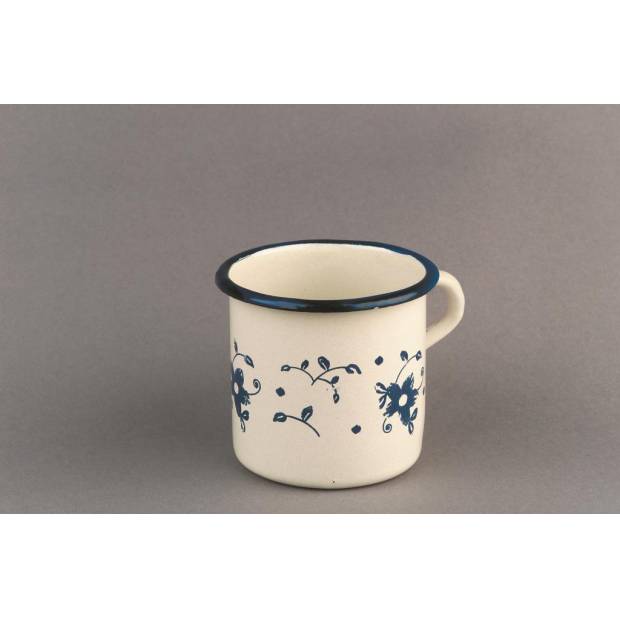 Hrnky a další produkty ze smaltu se opět vrací, ale ty současné jsou vzhledem k používání nových materiálů a technologií mnohem kvalitnější a tak budete zcela jistě spokojeni i s tímto hrnkem. Má klasický tvar, jeho obsah je 4 decilitry a na povrchu má jemný květinový dekor.