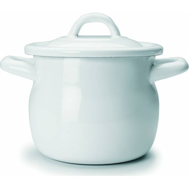 Čistě bílý prohnutý hrnec s poklicí je perfektní na přípravu menšího množství jídla. Jedná se o mini hrnec, který má objem pouhý půl litr. Smaltové hrnce výborně rozvádí teplo pro vždy rovnoměrné ohřátí. Hrnec včetně poklice můžete mýt v myčce. Chraňte proti poškrábání. Průměr: 12 cm.