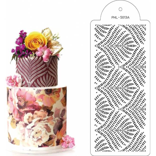 Stencilová šablona pro výrobu dekorativních jedlých ozdob na dort. Lze použít také s airbrush pistolí.