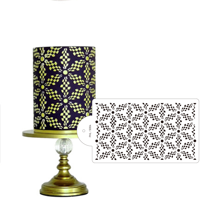 Profesionální stencil šablona na zdobení dortů Hypno hvězda vám usnadní práci. Vyrobeno z vysoce kvalitního materiálu, proto je bezpečné, šetrné k životnímu prostředí a ideální pro dlouhodobé používání. Stencil šablony jsouo také vhodné na zmrzlinové dezerty, horký fondán, máslový krém, čokoládový prášek nebo jakoukoli potahovací hmotu. Dodejte svému výtvoru trochu textury a hloubky pomocí této šablony na dorty.