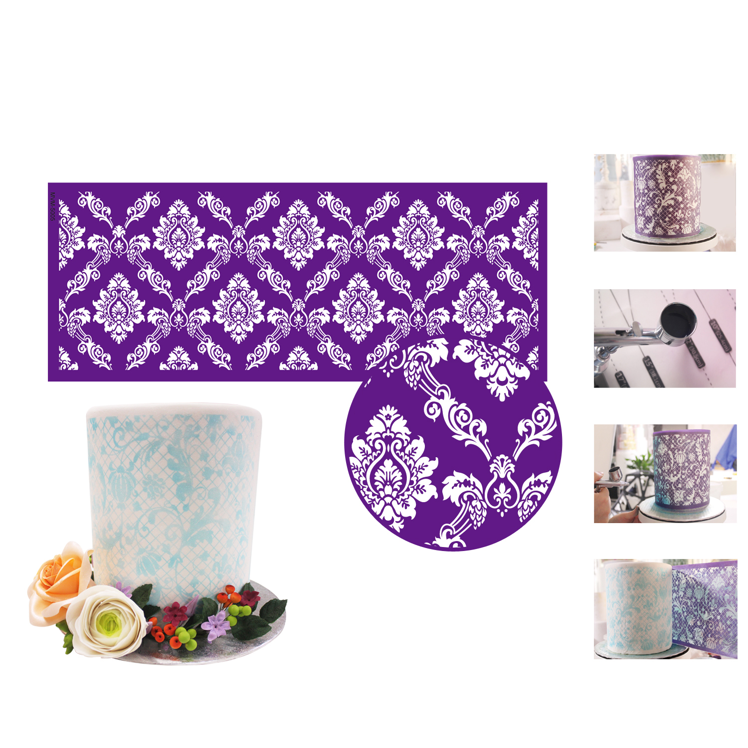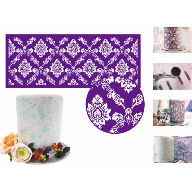 Profesionální šablona pro zdobení dortů je vhodná pro stencil a airbrush. Je potřeba ji přiložit na dort pevně a při aplikaci barvy s ní nehýbat. Jedině tak bude vzor naprosto dokonalý.