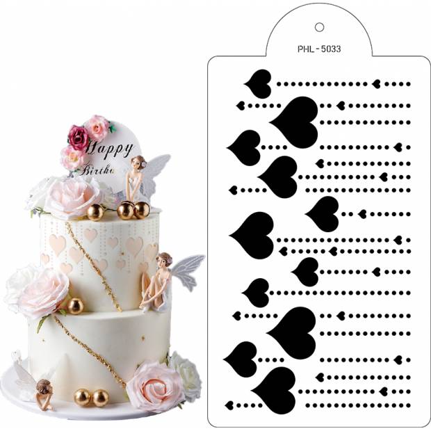 Stencil šablona srdíčka 40x21cm - Cakesicq