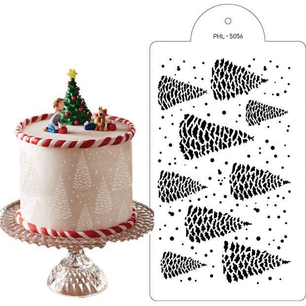 Stencil šablona zasněžené stromečky 40x21cm - Cakesicq