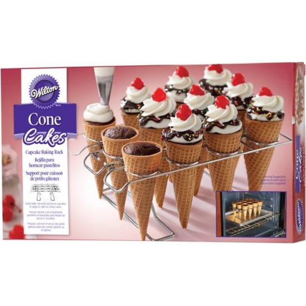 Moderní stojan na kornouty  je perfektní způsob, jak udělat skvělé letní zmrzlinové dezerty.  Snadno pečte, zdobte a podávejte kornoutky se zmrzlinou či pařízskou šlehačkou. Stojan má 12 kónických šálků. Vhodné pro podávání dezertů při grilování nebo na pikniku. Vhodné pro běžné zmrzlinové kornouty.